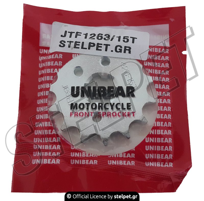 Μπροστινό γρανάζι κίνησης, 15Δ JTF 1263.15, για Yamaha Crypton, αλλά και Crypton-R, καθώς επίσης και για τα F1ZR και Z-125. Πολύ ανθεκτική κατασκευή με προδιαγραφές και τεχνολογία Ιαπωνίας απο την εταιρεία Unibear.