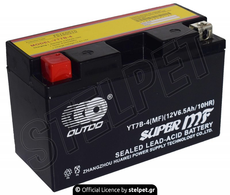 Μπαταρία της OUTDO, μοντέλο YT7B-4 (MF), 12V 6,5Ah. Έτοιμη, φορτισμένη από το εργοστάσιο, maintenance free. (TG)