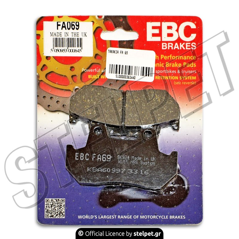 Τακάκια FA069, από την εταιρεία EBC Brakes. Τα συγκεκριμένα τακάκια της εταιρείας EBC θα σας προσφέρουν άριστη αίσθηση πέδησης. Είναι υψηλής ποιότητας κατασκευής και παρέχουν μεγαλύτερη αντοχή από τα εργοστασιακά καθώς επίσης έχουν και μεγάλη αντοχή στη υψηλές θερμοκρασίες. (KS)