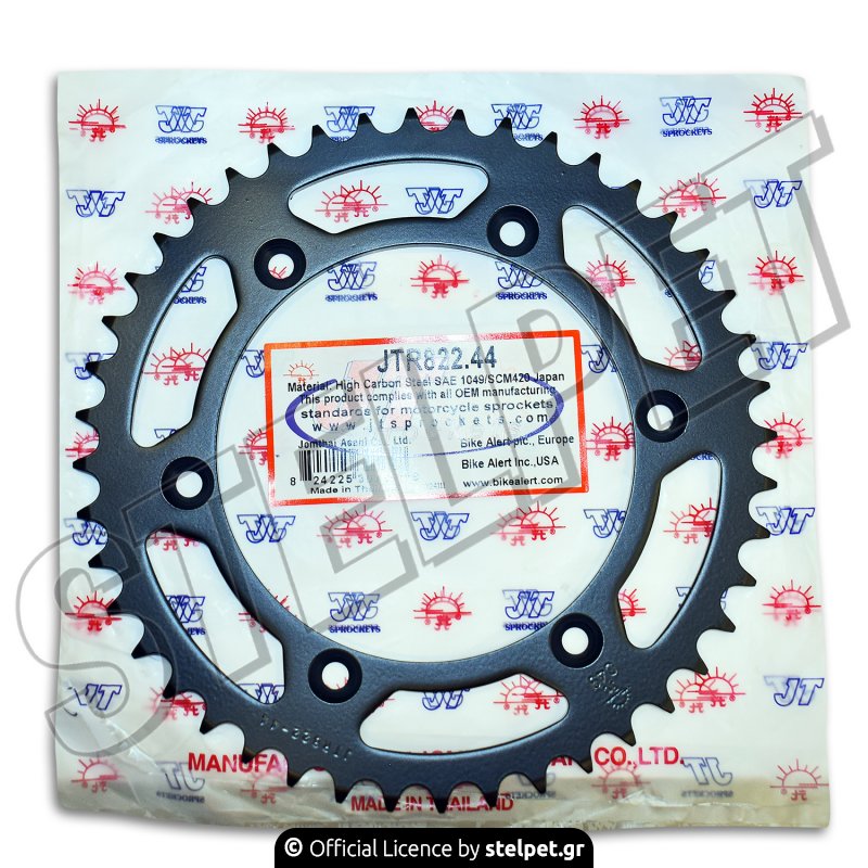 Πίσω γρανάζι κίνησης σε μαύρο χρώμα και 44 δόντια από την εταιρεία JT. Εφαρμόζει σε Suzuki RGV 250 και Suzuki DR400. (KG)