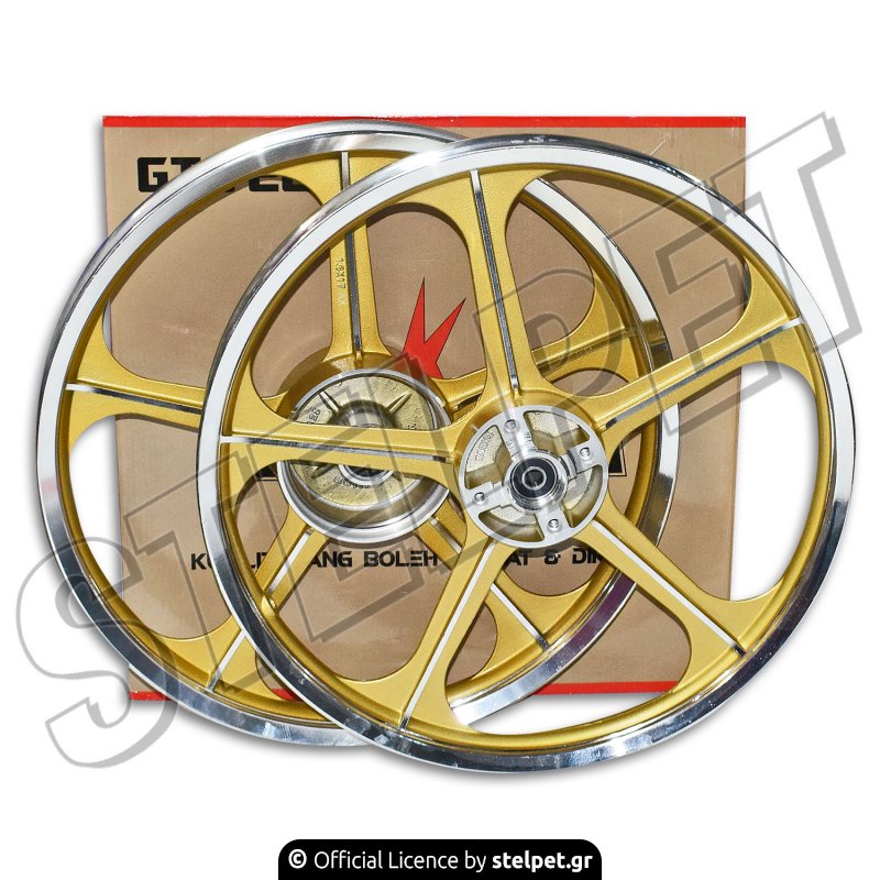 Ζάντες αλουμινίου Honda Innova 125, με 5 μπράτσα, σε χρυσό - ασημί χρώμα, από την εταιρεία Kayama.