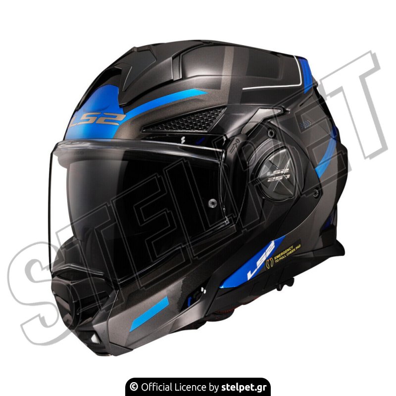 Ανοιγόμενο κράνος Advant X Spectrum 901.21 από την εταιρεία LS2 σε Μαύρο/Τιτάνιο/Μπλε χρώμα.