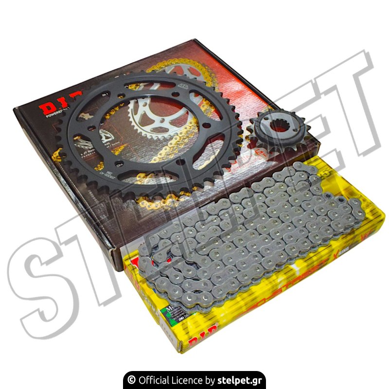 Αλυσιδογράναζα σετ για Honda Transalp από την εταιρεία DID. Η συσκευασία περιλαμβάνει μπροστινό γρανάζι 15 δοντιών, πίσω γρανάζι 47 δοντιών και ασημένια αλυσίδα 525VX x 118 X-Ring.