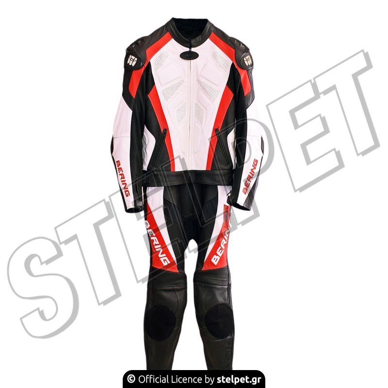 Η διαιρούμενη δερμάτινη φόρμα Bering σε χρώμα μαύρο-άσπρο-κόκκινο, μέγεθος XL, είναι η ιδανική επιλογή για αναβάτες που ζητούν μέγιστη προστασία, άνεση και σπορ εμφάνιση. Κατασκευασμένη από premium δέρμα αγελάδας υψηλής αντοχής, προσφέρει εξαιρετική προστασία σε περίπτωση πτώσης και ανθεκτικότητα στη φθορά.