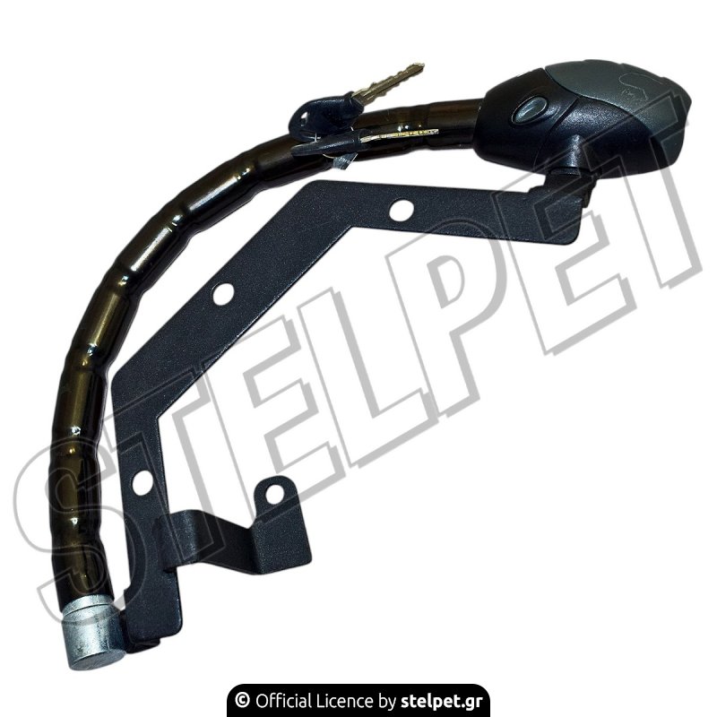 Κλειδαριά τύπου κούλουρα υψηλής ασφάλειας από την LUMA, σχεδιασμένη ειδικά για Piaggio Beverly 125. Ιδανική για κλείδωμα τιμονιού και σέλας, παρέχοντας αυξημένη προστασία του scooter σας από κλοπή.