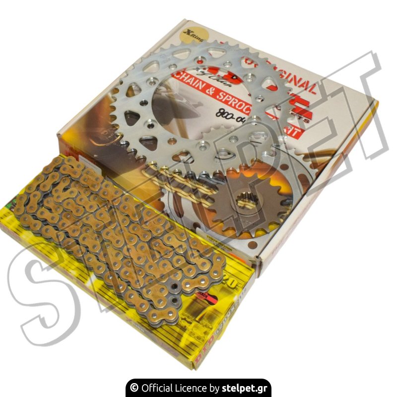 Το σετ περιλαμβάνει πίσω γρανάζι 46δ και εμπρός γρανάζι 16δ από την εταιρεία JT, με ενισχυμένη χρυσή αλυσίδα 520 από την εταιρεία DID η οποία διαθέτει X-ring. Άριστης ποιότητας, κατασκευάζεται στη Ιαπωνία.