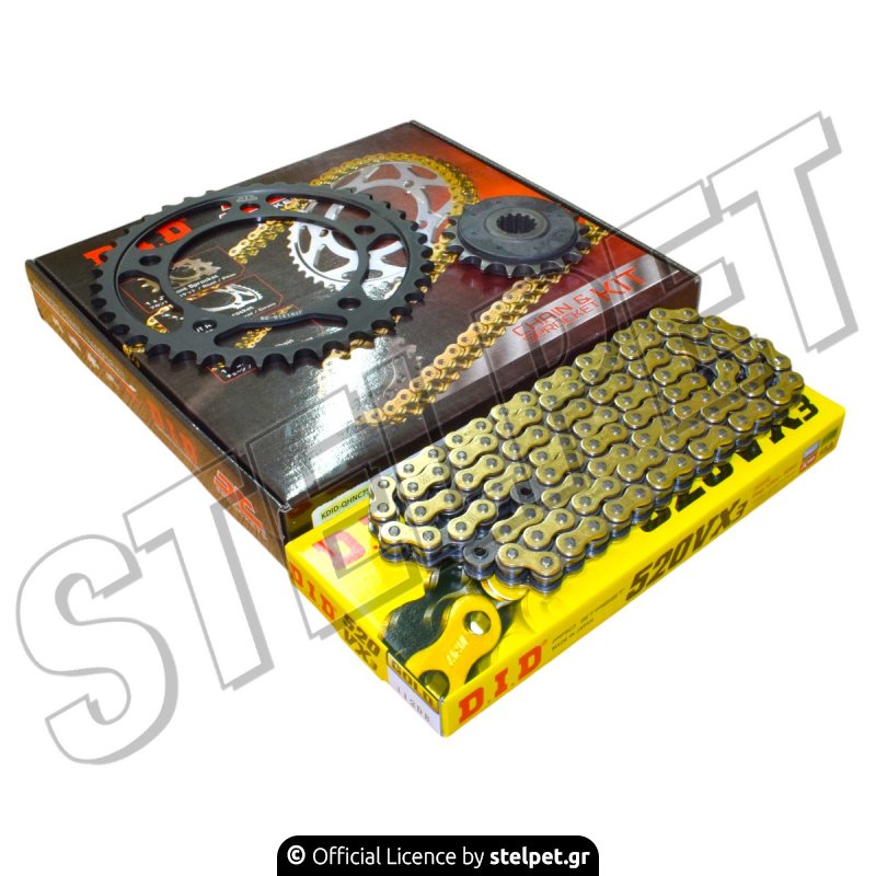 Το σετ περιλαμβάνει μπροστινό γρανάζι κίνησης 17 δόντια από την εταιρεία JT, πίσω γρανάζι κίνησης 39 δόντια επίσης από την εταιρεία JT και αλυσίδα κίνησης μαύρη  520VX2 x 112.