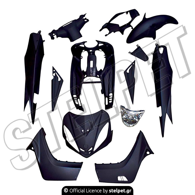 Κουστούμι 12 τεμαχίων με φανάρι για το Yamaha Crypton-X 135, σε μαύρο ματ χρώμα.