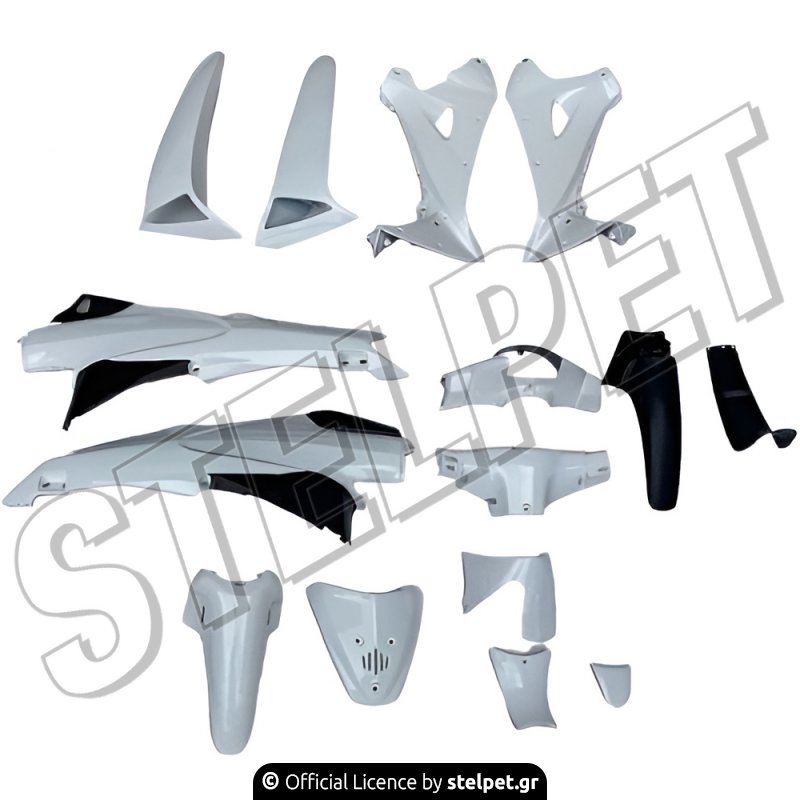 Κομπλέ κουστούμι Honda Innova 125, σε άσπρο χρώμα, με 15 τεμάχια. Εξαιρετικής ποιότητας και φινιρίσματος, από την εταιρεία OOH.