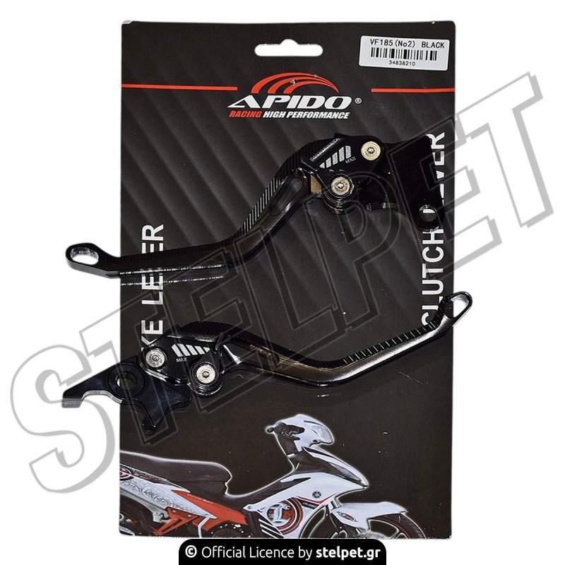 Μανέτες ρυθμιζόμενες ζευγάρι No2 για το Sym VF185 από την εταιρεία Apido Racing σε μαύρο χρώμα.