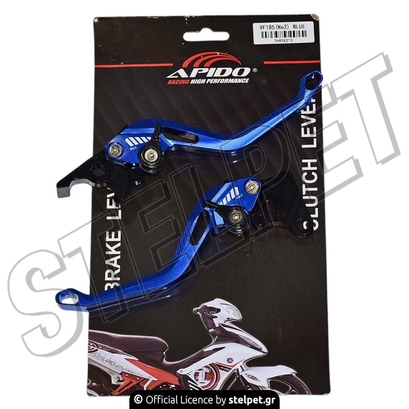 Μανέτες ρυθμιζόμενες ζευγάρι No2 για το Sym VF185 από την εταιρεία Apido Racing σε μπλε χρώμα.