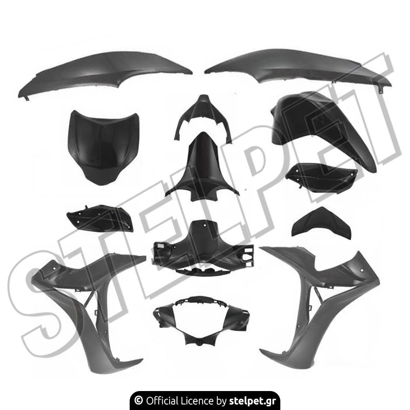 Κοστούμι Honda Supra-Χ σε μαύρο / γκρι χρώμα και αποτελείται από 13τεμάχια.