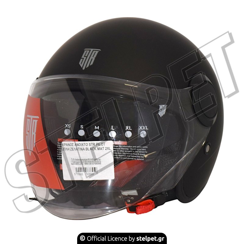 Κράνος Jet PILOT σε μαύρο ματ χρώμα από την εταιρεία STR.
