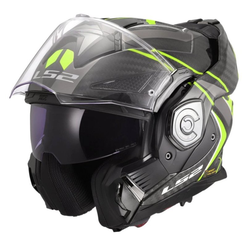 Ανοιγόμενο κράνος Advant X Carbon Future II HV σε κίτρινο χρώμα από την εταιρεία LS2.