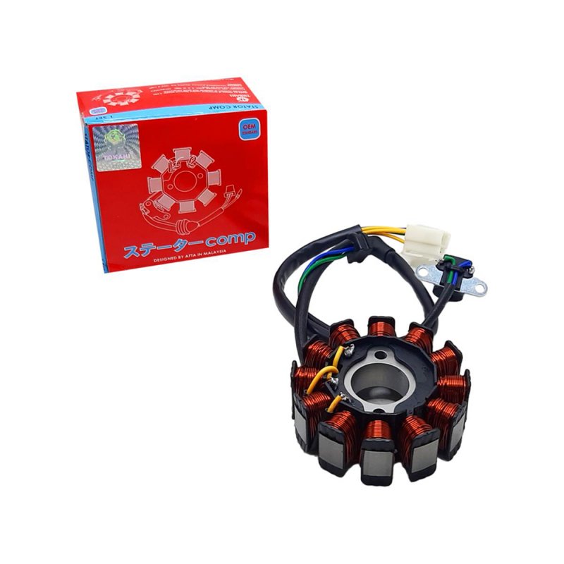 Ανταλλακτικά πηνία (στάτορ) υψηλής ποιότητας από την Tokahi, ειδικά σχεδιασμένα για το SYM VF125i. Αποτελούν βασικό μέρος του ηλεκτρικού συστήματος, υπεύθυνα για την παραγωγή ρεύματος και τη σωστή φόρτιση της μπαταρίας.
