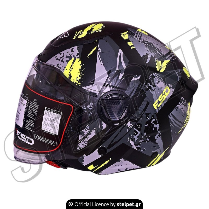 Κράνος open face / jet 760 22.06 σε χρώμα μαύρο ματ / κίτρινο από την εταιρεία FSD.