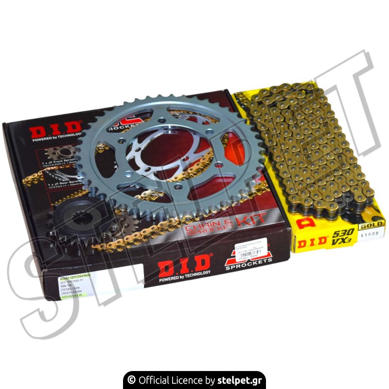 Το σετ περιλαμβάνει εμπρός γρανάζι κίνησης 16 δόντια, πίσω γρανάζι κίνησης 46 δόντια και αλυσίδα κίνησης 530VX3 x 118ZB.