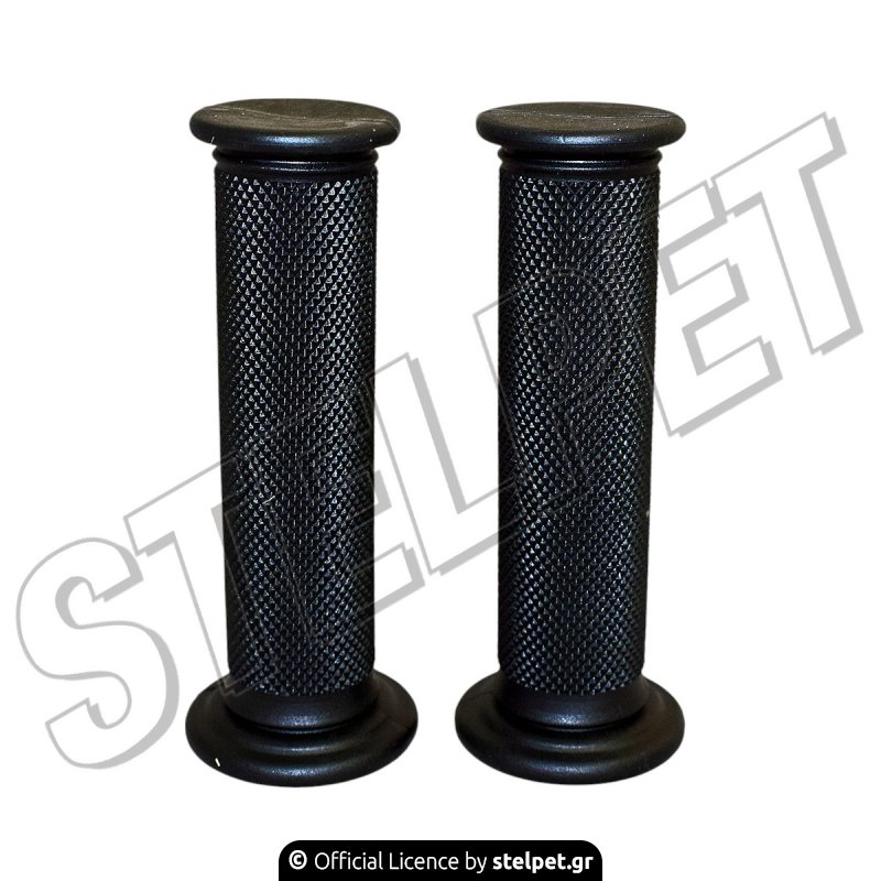 Ανθεκτικές χειρολαβές τιμονιού για μοτοσυκλέτα διαμέτρου 7/8" (22mm), σε μαύρο χρώμα, με σχεδιασμό κουκίδων για άνετο και σταθερό κράτημα. Ιδανικές για βελτίωση της αίσθησης του χειρισμού και του ελέγχου του δικύκλου σας.