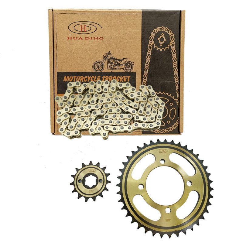 Αναβάθμισε την απόδοση και την αξιοπιστία της μοτοσυκλέτας σου με το σετ αλυσιδογράναζα HUA DING, ειδικά σχεδιασμένο για Yamaha Crypton X 135. Το σετ περιλαμβάνει: