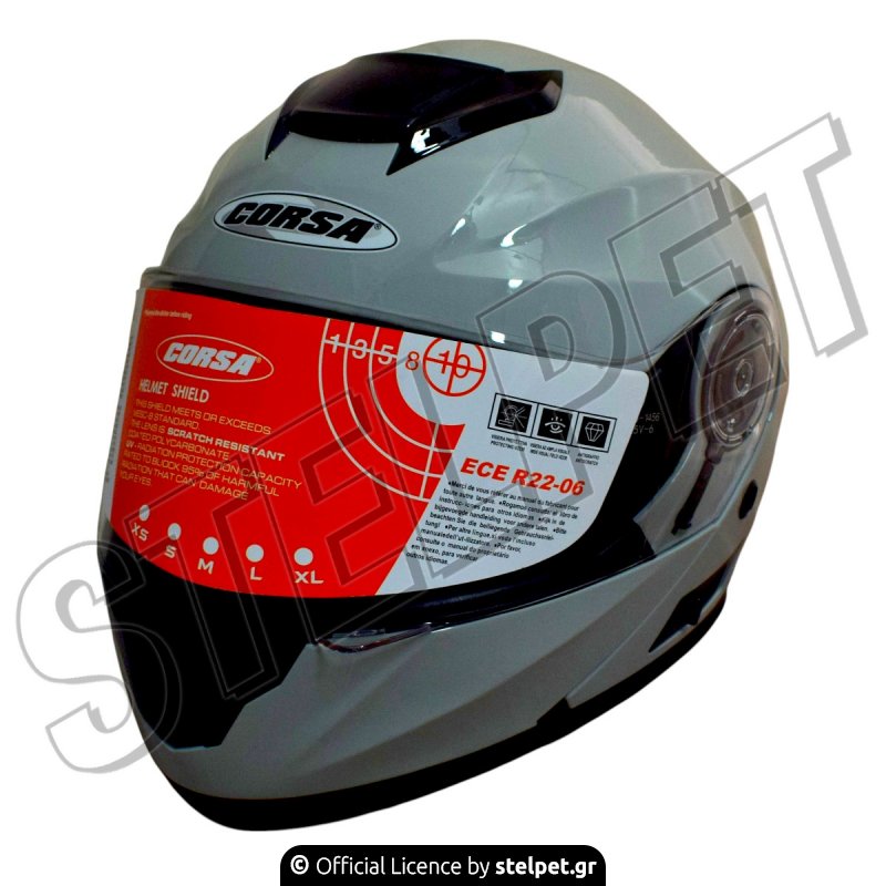 Κράνος flip up CF159 με πιστοποίηση ECE22.06 σε γκρι ανοιχτό χρώμα από την εταιρεία CORSA .