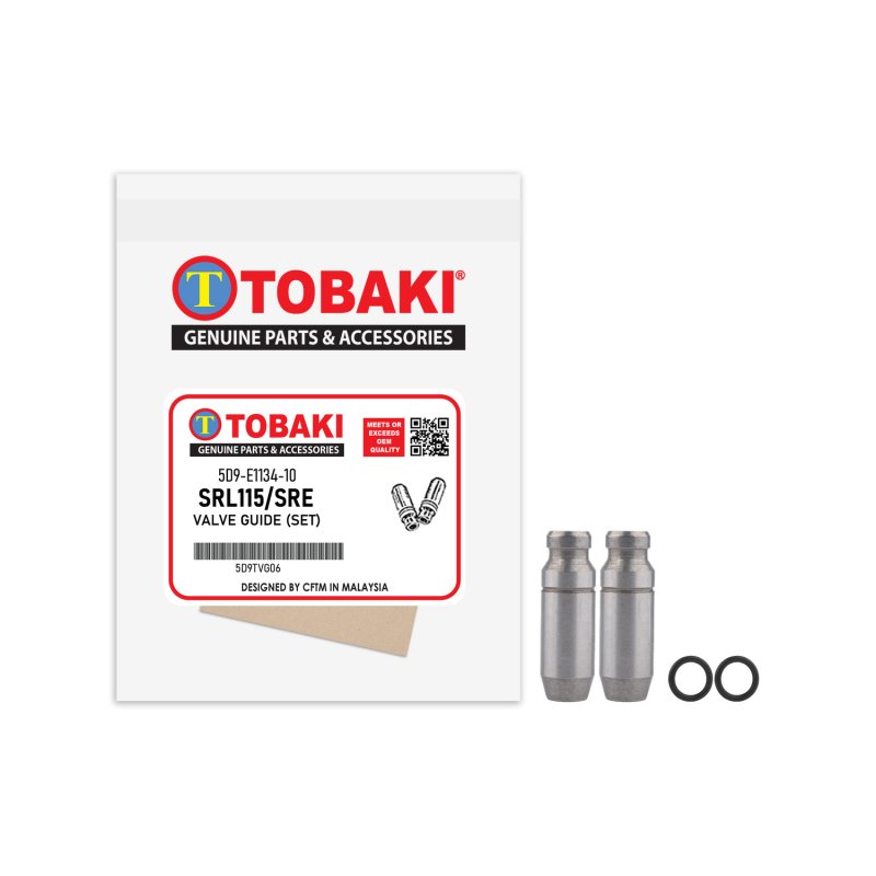 Οδηγοί βαλβίδων εισαγωγής και εξαγωγής TOBAKI, κατάλληλοι για Yamaha Crypton με κωδικό 5D9-E1134-10. Προσφέρουν υψηλή ακρίβεια, σταθερότητα και αντοχή σε θερμοκρασίες και φθορά. Ιδανικοί για συντήρηση ή επισκευή κεφαλής κινητήρα.