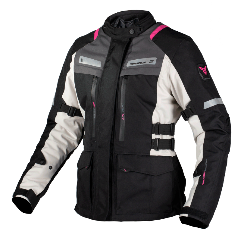 Το εξωτερικό στρώμα του μπουφάν είναι από ύφασμα με εξαιρετική αντοχή στην τριβή. Οι αεραγωγοί με φερμουάρ στο μπροστινό μέρος προσφέρουν σημαντική ροή αέρα όταν χρειάζεται. Έχει διπλούς ρυθμιζόμενους ιμάντες μέσης, ρυθμιστές στήθους και βραχιόνων, για να εξασφαλίσει μια τέλεια προσαρμοσμένη εφαρμογή. Η ασφάλεια παρέχεται από τα αποσπώμενα προστατευτικά CE CE1616-1 στους ώμους και τους αγκώνες και ένα αφαιρούμενο CE προστατευτικό πλάτης.